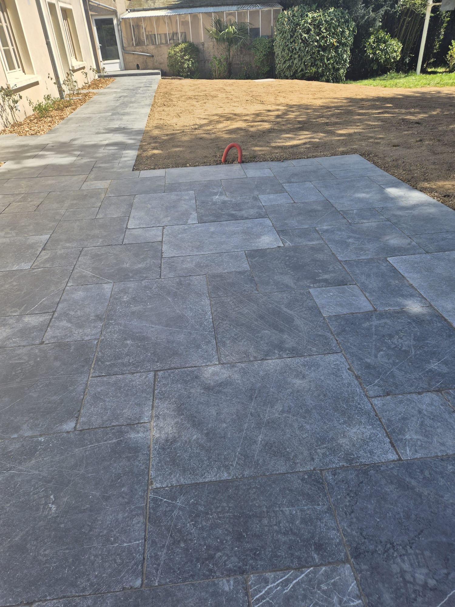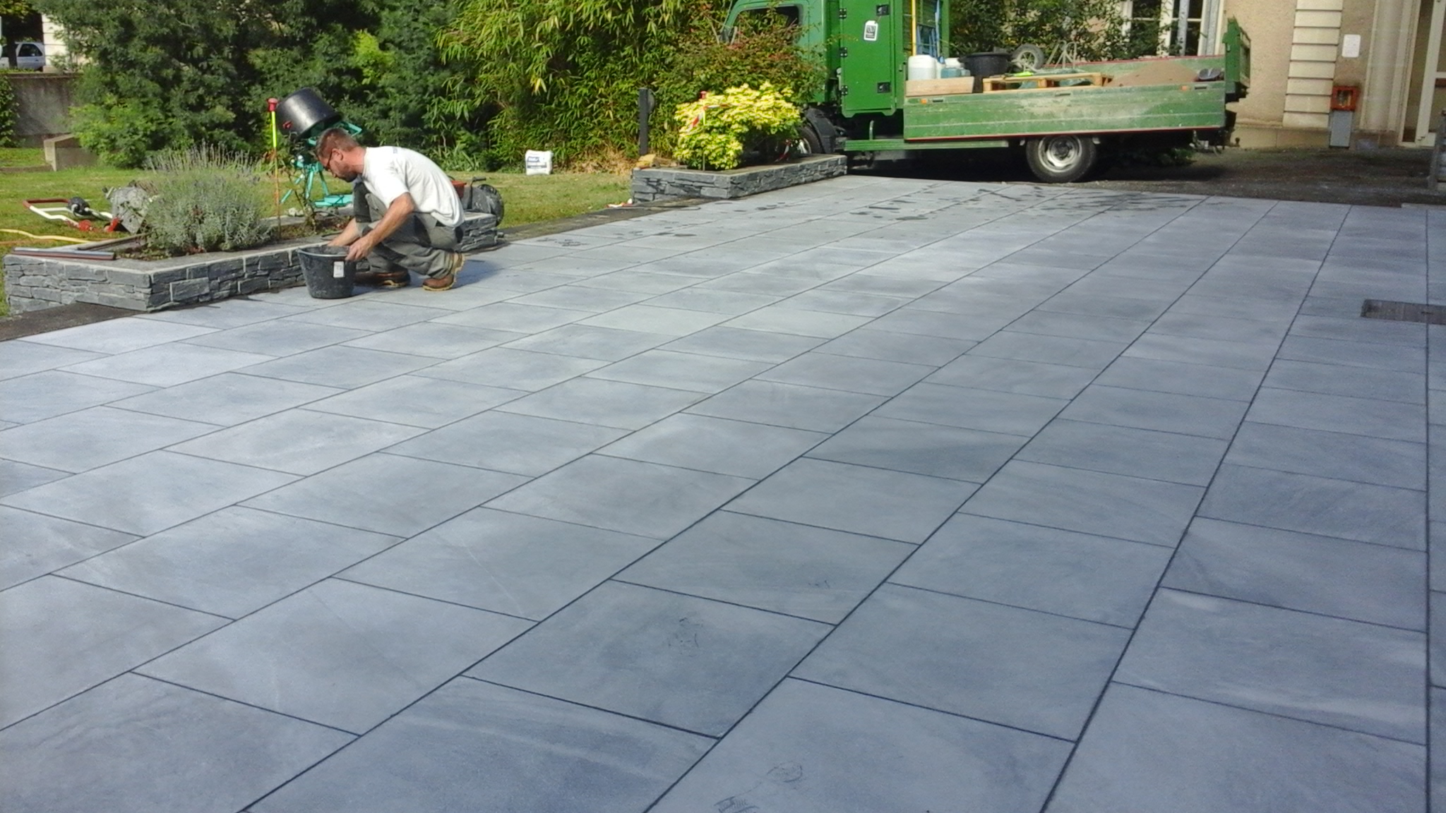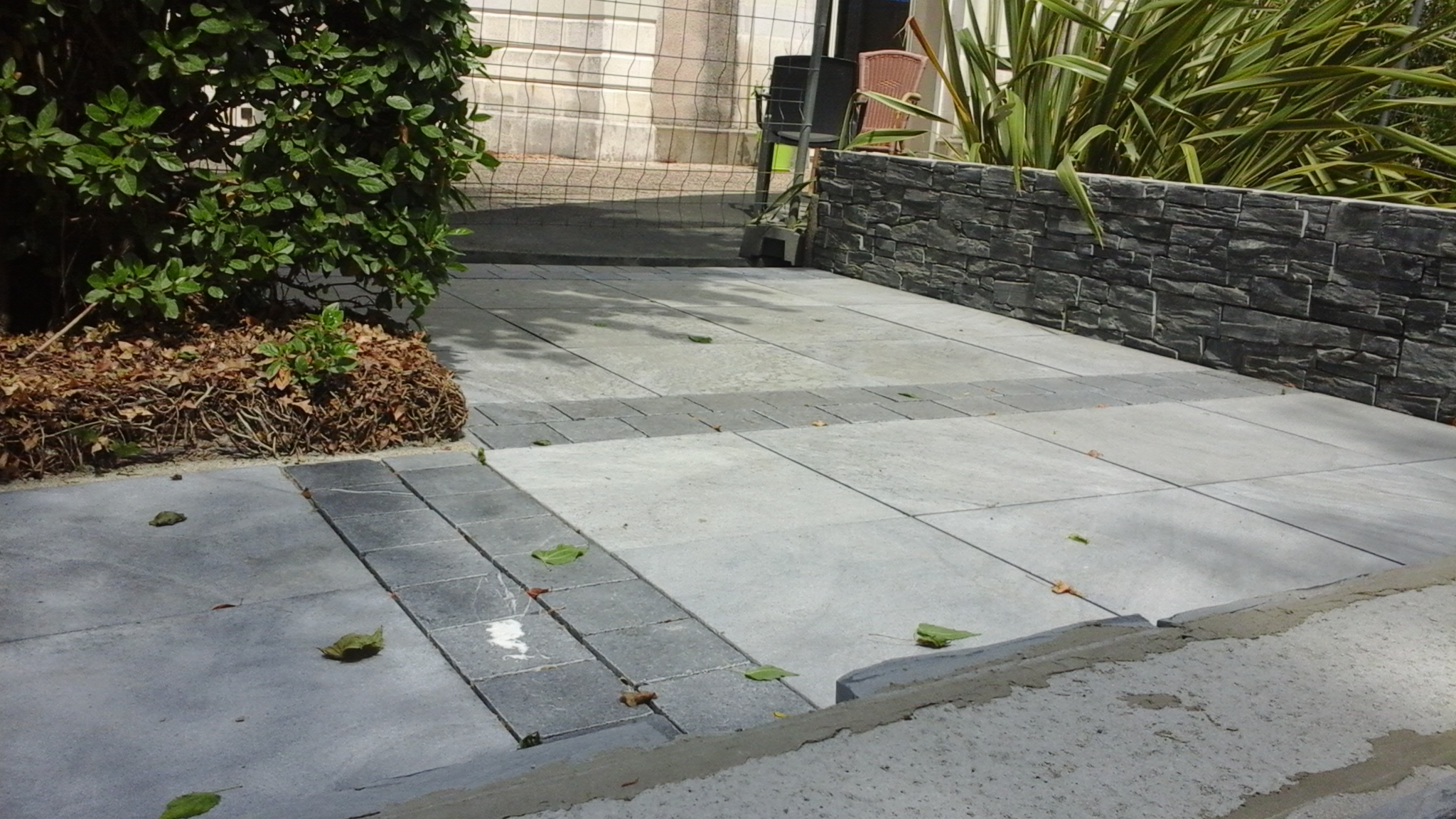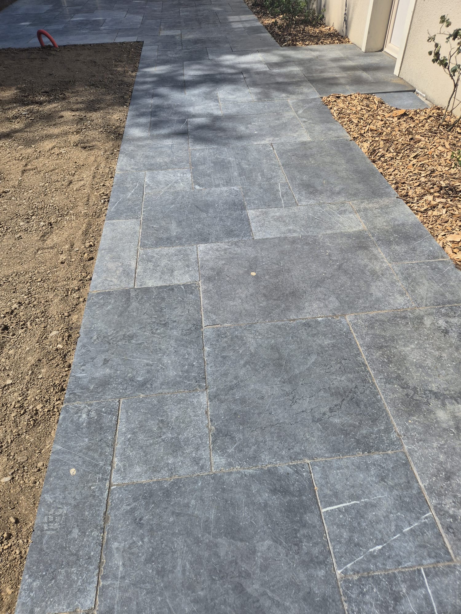 Nos paysagistes posent les dalles une à une avec soin, en respectant les alignements et les joints. Nous réalisons des poses droites, en opus romain ou irrégulières pour un rendu sur mesure et un charme authentique.