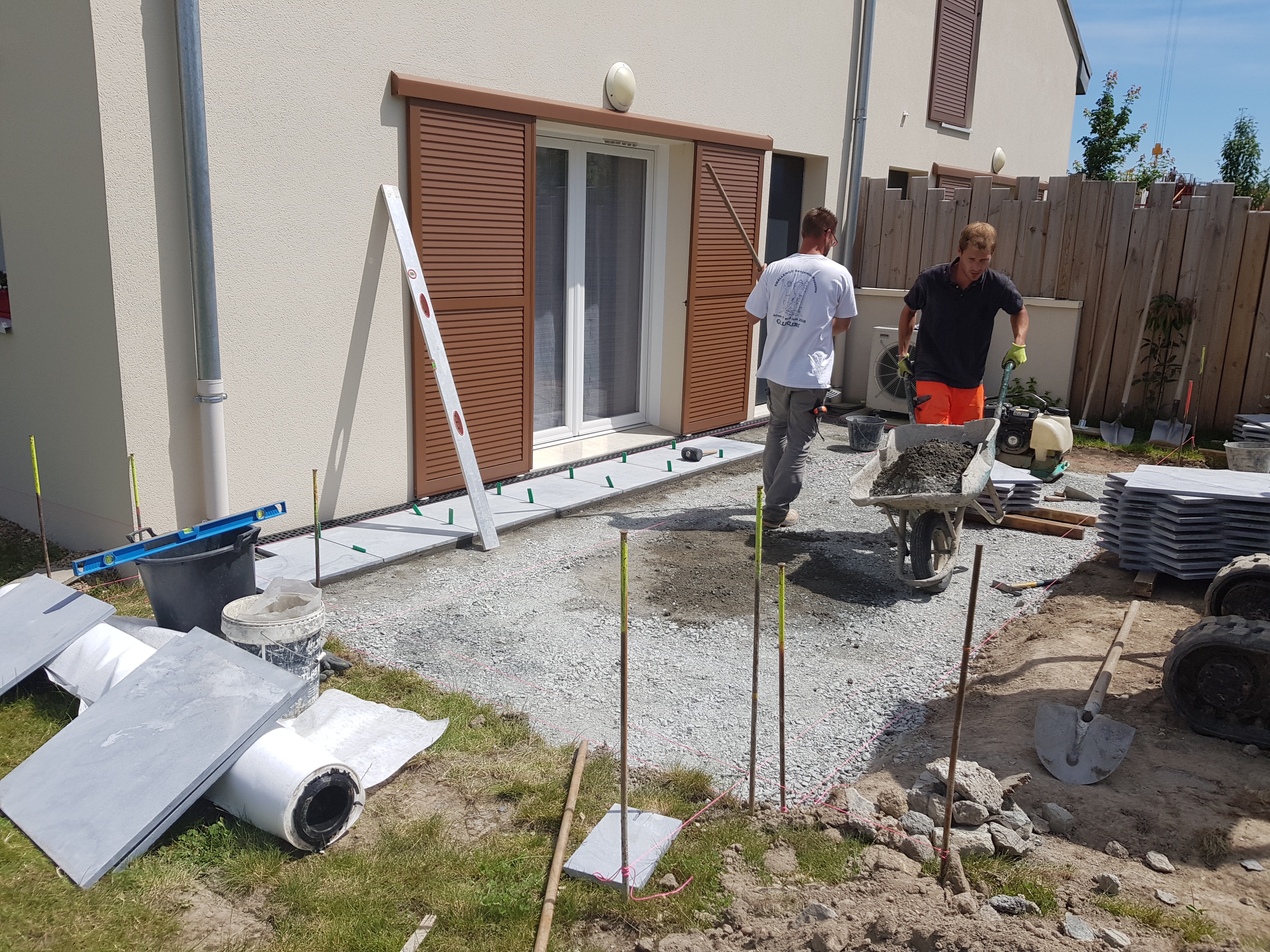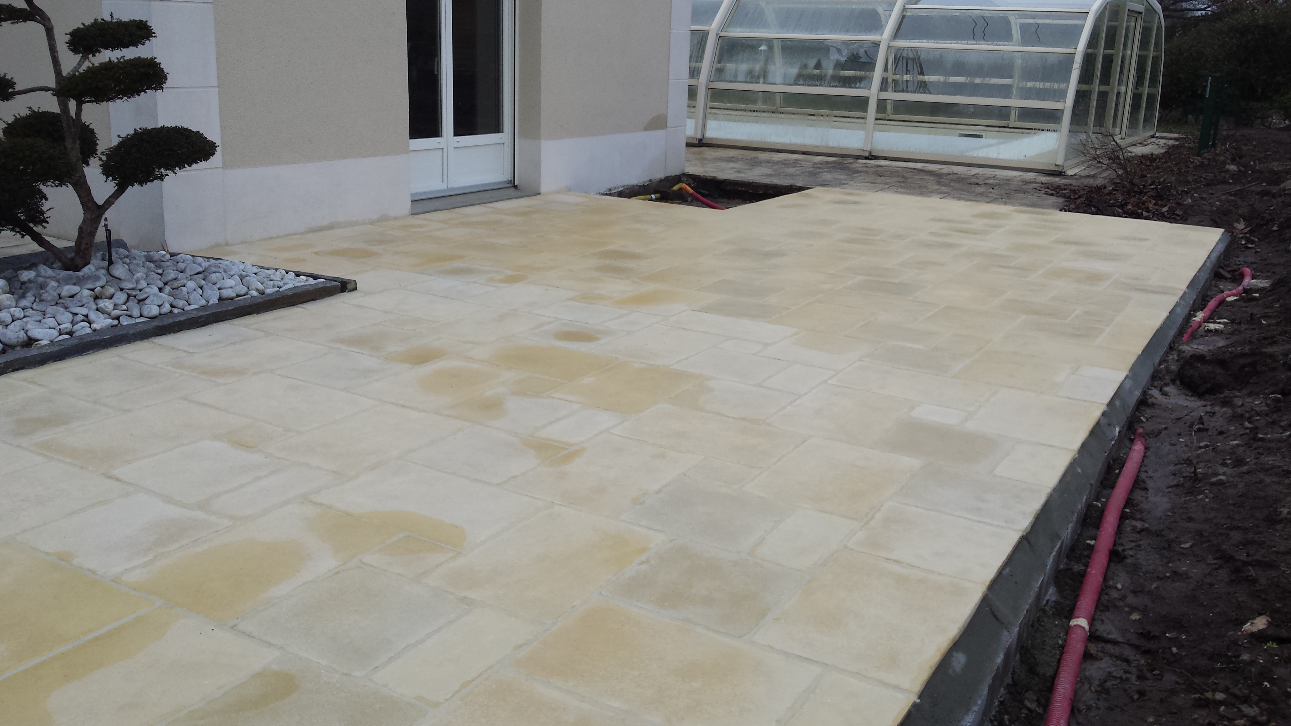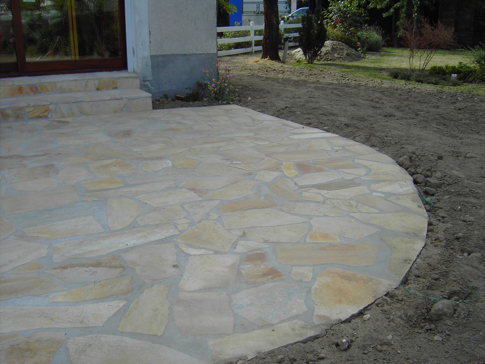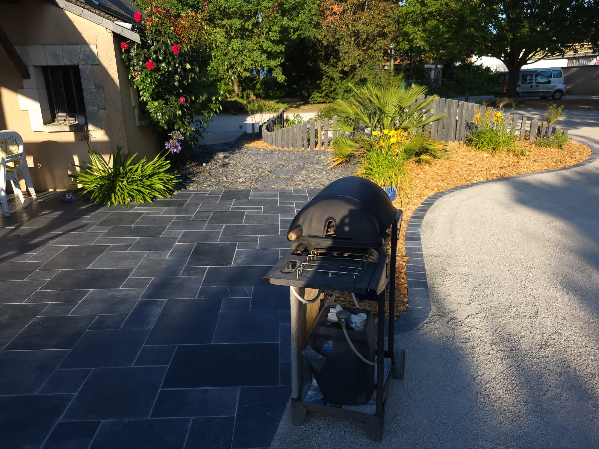 Nos paysagistes posent les dalles une à une avec soin, en respectant les alignements et les joints. Nous réalisons des poses droites, en opus romain ou irrégulières pour un rendu sur mesure et un charme authentique.