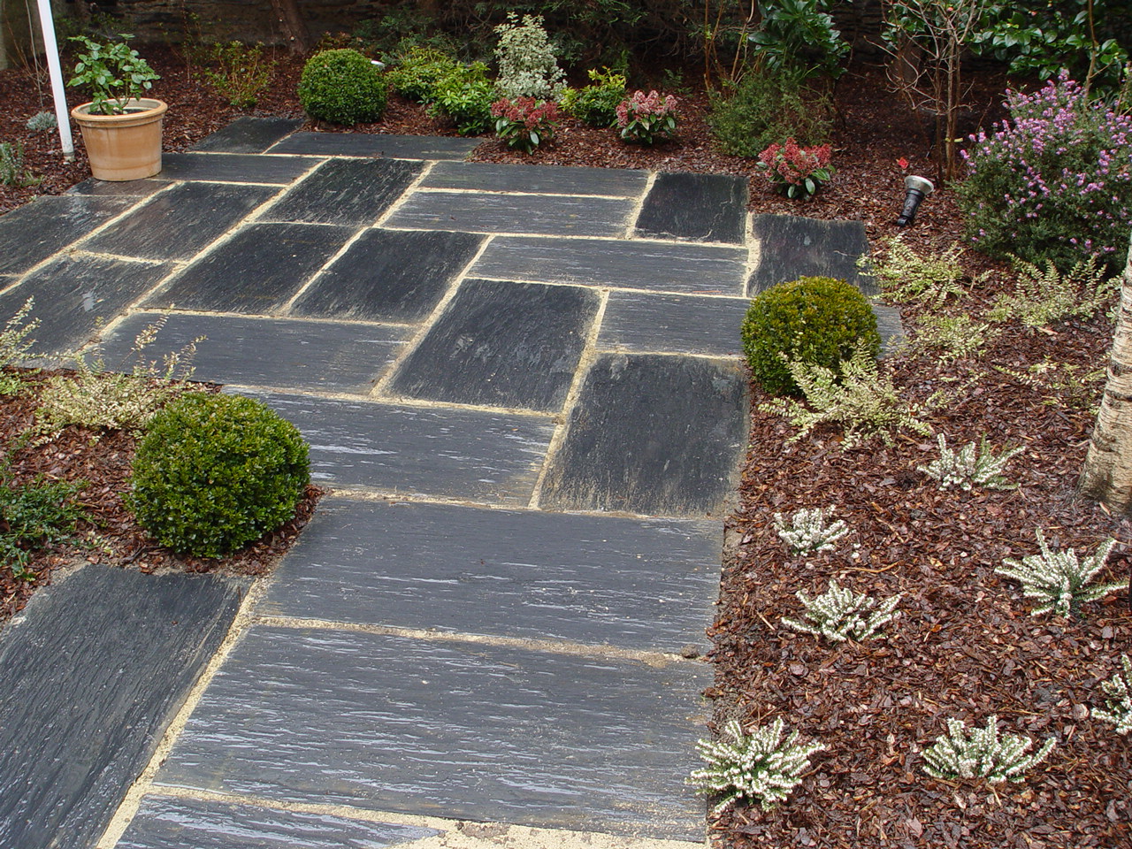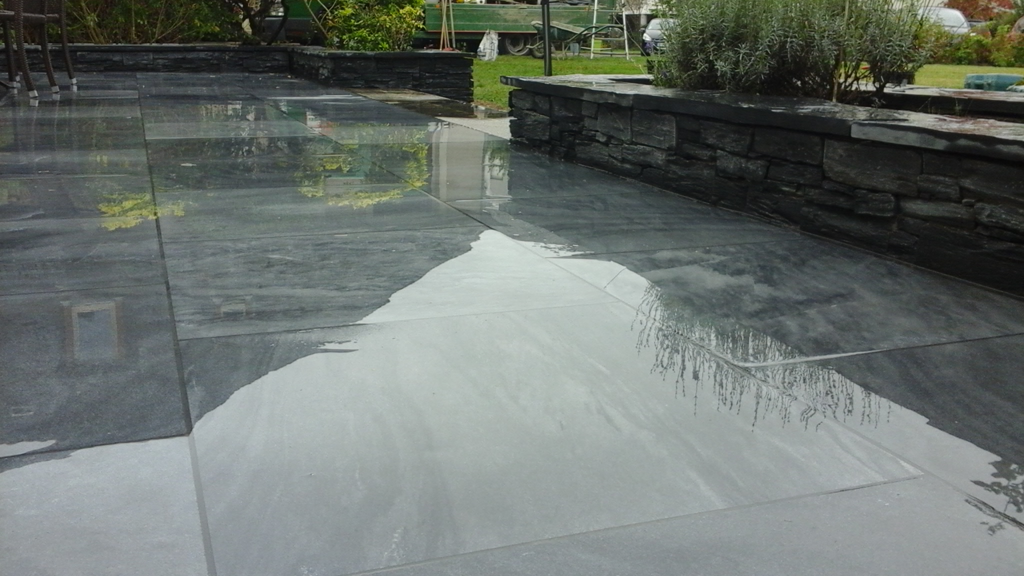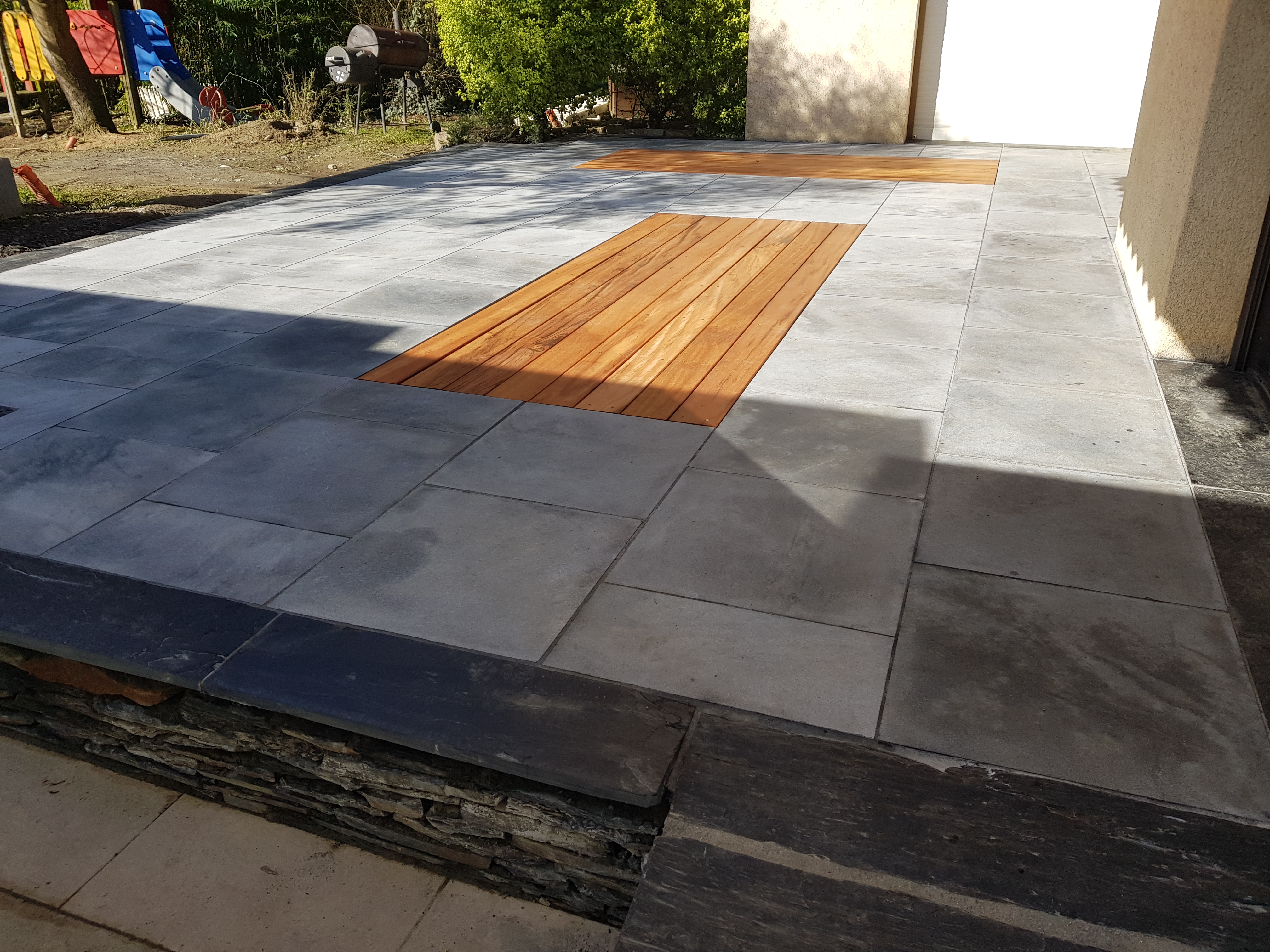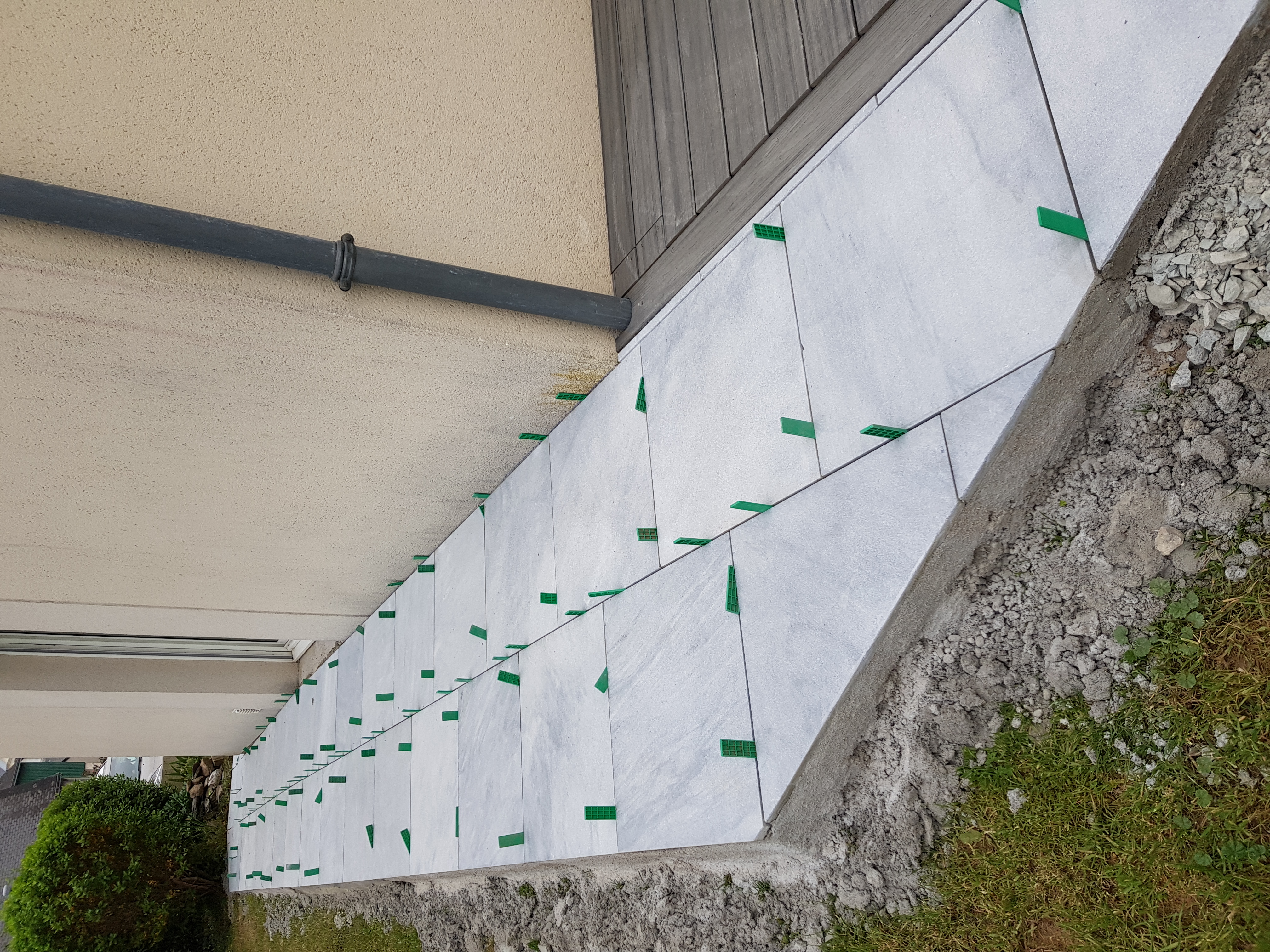 Nos paysagistes posent les dalles une à une avec soin, en respectant les alignements et les joints. Nous réalisons des poses droites, en opus romain ou irrégulières pour un rendu sur mesure et un charme authentique.