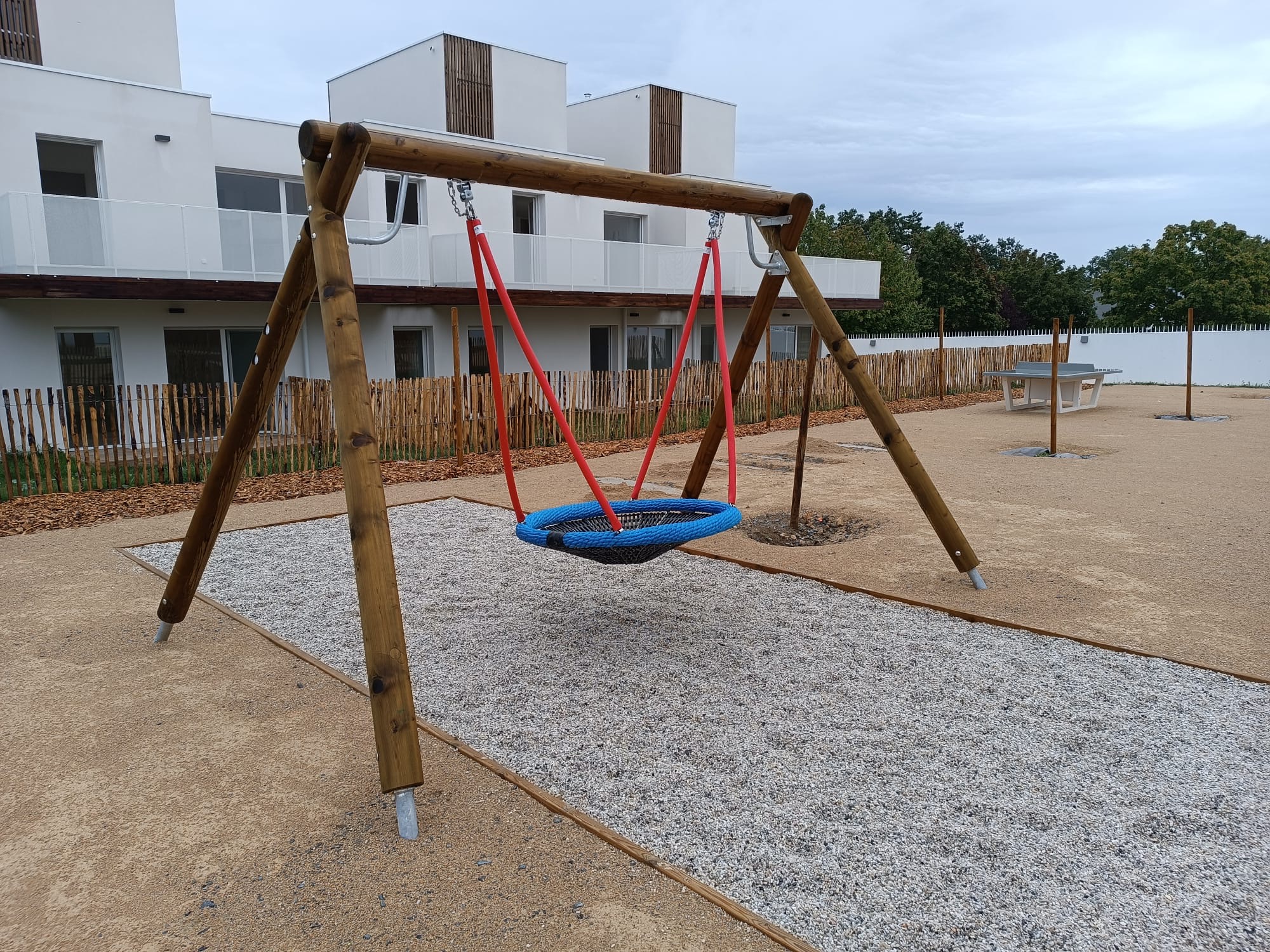 Intégration végétale, pose de bordures, engazonnement périphérique et signalétique. L’espace est livré clé en main, prêt à accueillir les enfants dans un cadre naturel et convivial.